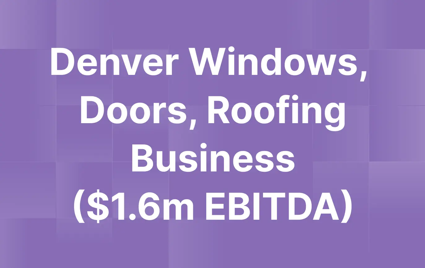 Deal of the Month: Denver Windows, Doors, Roofing Business ($1.6m EBITDA)